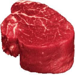 Filet MignonThe tenderloin is the origin of the Filet Mignon and is the most tender cut of beef and is also arguably the most desirable and therefore the most expensive. The average steer or heifer provides no more than 500 gms of it. Because the muscle is not weight-bearing, it contains less connective tissue, which makes it tender. |