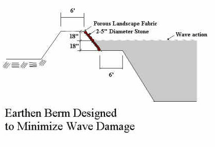 This is an innovative method of lagoon construction, designed to lessen the effect of wave action on an earthen berm. This is becoming a more serious consideration as lagoons become larger, and as lagoon surfaces are often elevated 10-15' above grade where wind speed is greater.