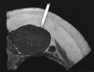 Over the past three years, we have observed that pig genotypes differ not only in the total amount of backfat, but also in the relative amounts of the three individual backfat layers - outer, middle and inner (Figure 1). While it is apparent from carcass evaluations that these layers differ in chemical, structural and textural properties, their relative contributions to growth and physiology in the live animal remain unknown. At the present time, we are analyzing the growth of individual backfat layers in market hogs, and further characterizing each layer in terms of cellularity, fatty acid composition and gene expression. This trial is a preliminary investigation of how the energy demands of gestation and lactation affect growth and depletion of individual backfat layers. Preliminary data from other trials indicate that consideration of these layers to be three separate tissues may enhance pork quality and carcass composition. We are currently investigating whether such a consideration could enhance reproductive management as well. Monitoring backfat development may provide an insight into relationships between individual fat layers and reproductive traits.